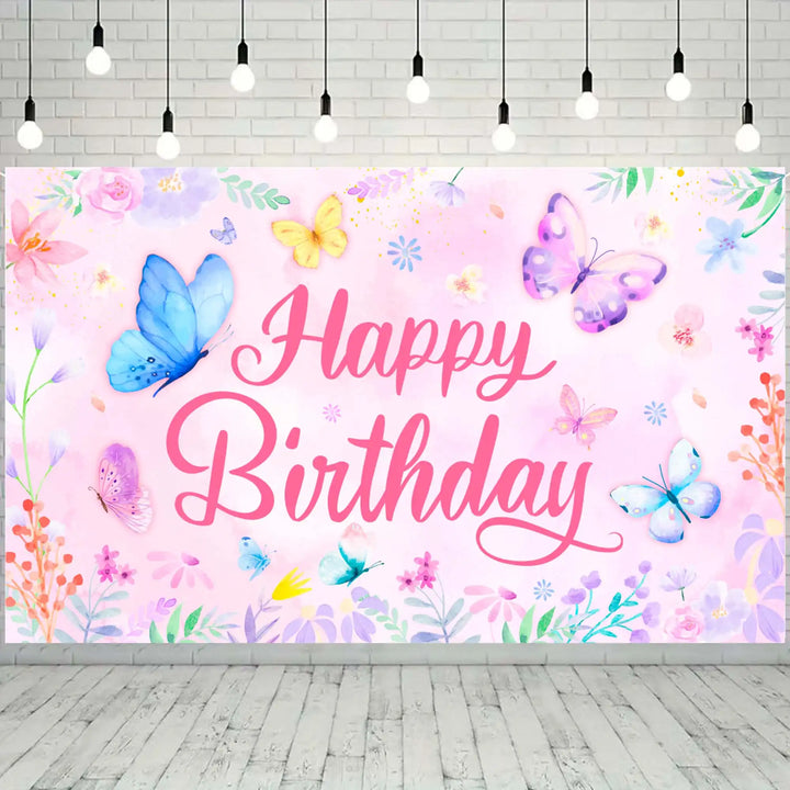 43'' x 71'' Butterfly Birthday Backdrop for Butterfly Birthday Party Decorations Supplies