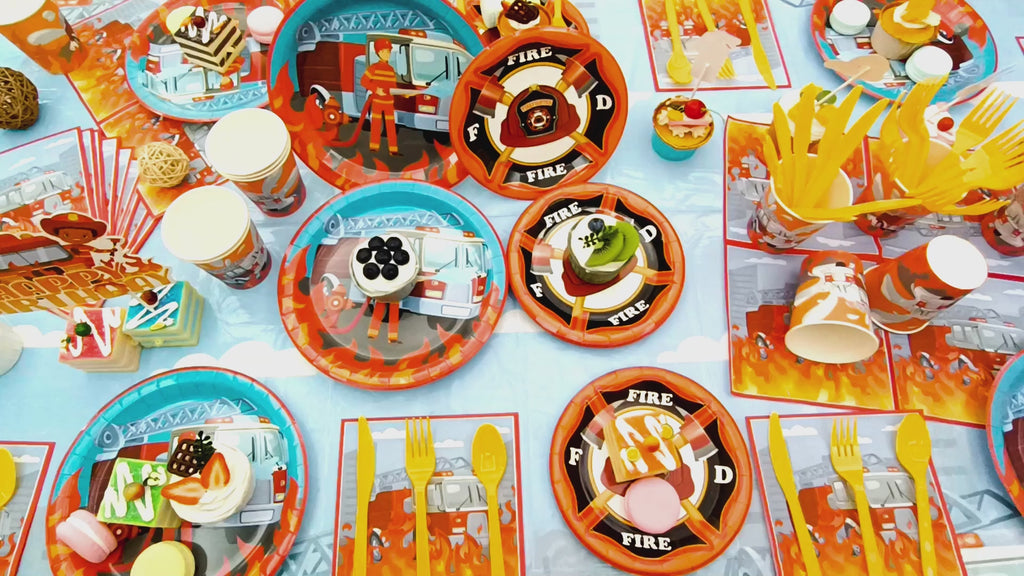 Fire Truck Birthday Party Supplies, 16 Guests Fire Truck Birthday Party Decorations for Boys - Fireman Happy Birthday Banner, Fire Truck Tablecloth Plates Cups Napkins ect Fire Truck Theme Birthday Party