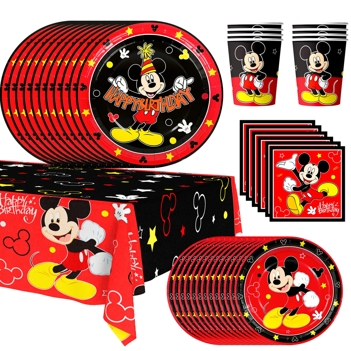 📍Mickey Mouse Party📍Our mickey mouse tableware party set includes 1 mickey mouse table cloths, 20 mickey mouse cups for party, 20 9'' mickey mouse paper plates, 20 7'' mickey mouse birthday plates, 20 mickey mouse birthday napkins and other mickey mouse birthday party tableware.