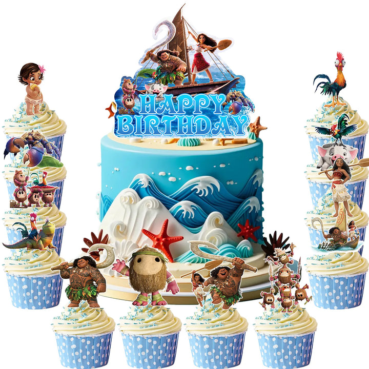 Excellent Moana Cake Decorations: Our Moana Happy Birthday Cake Decorations and Moana Cupcake Decorations are made of high-quality card stock and food-grade wooden sticks, which are not only of high quality, but also can directly contact Moana party food, so you can use them with confidence.