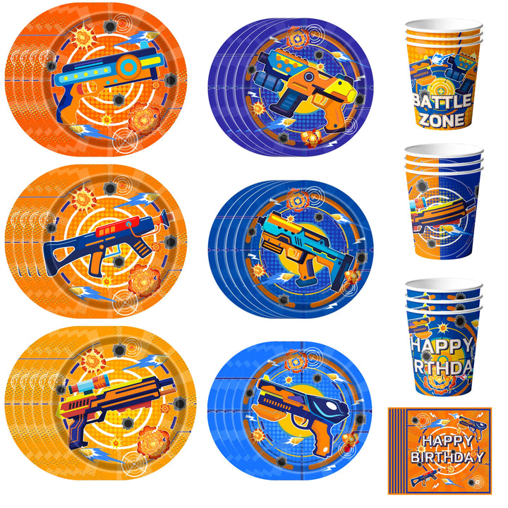 Suitable for: This dart war birthday tableware set is the perfect choice for dart war party, dart war birthday party, and as a gift, creating an unforgettable experience for you and your guests