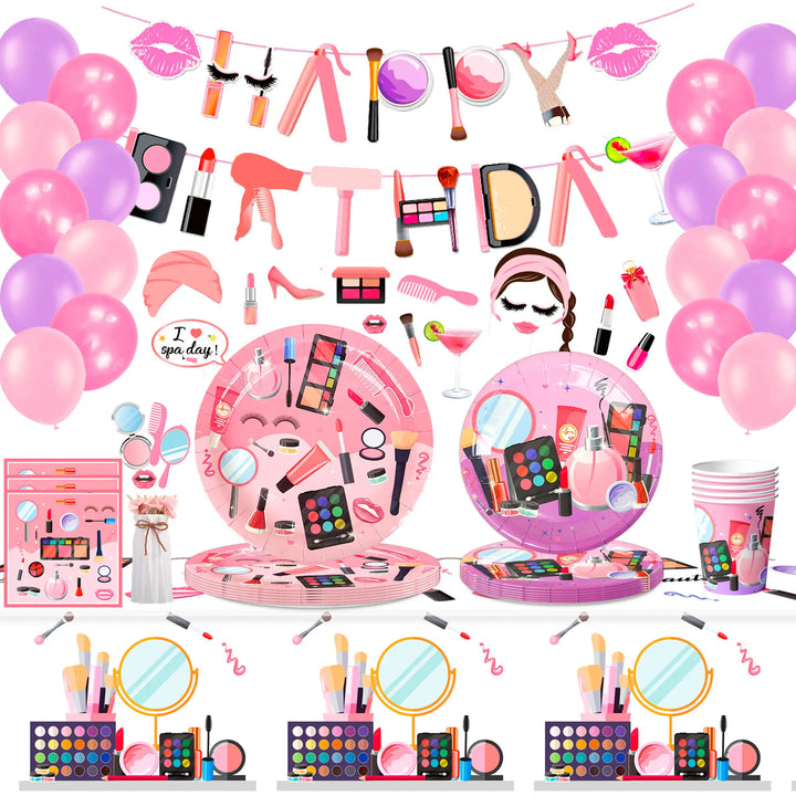 💄Suitable for Every Occasion💄This makeup party decorations & spa makeup tableware set is not only suitable for makeup theme birthday party,spa-themed party decoration;but also for spa day party,kids spa party,pink party,spa themed birthday party and other theme party decor.