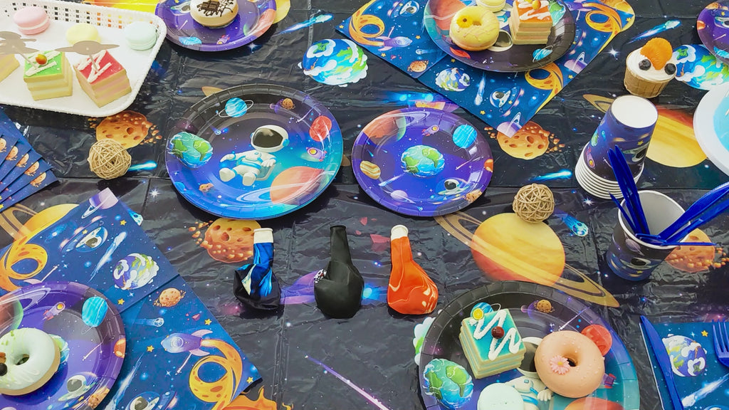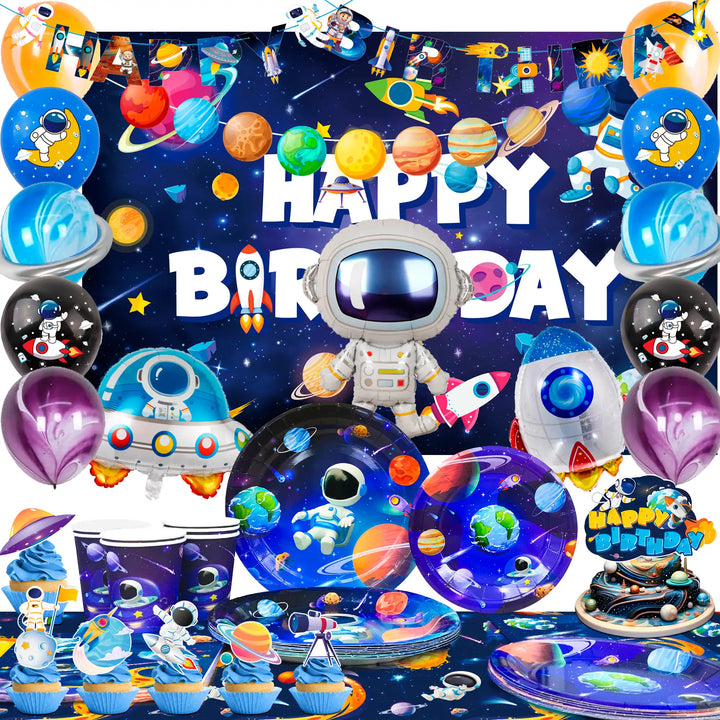 Space Birthday Party Decorations, 10 Guests Space Birthday Decorations&Outer Space Birthday Tableware Set- Outer Space Birthday Party Plates Tablecloth Backdrop Balloon etc Space Themed Party Decorations