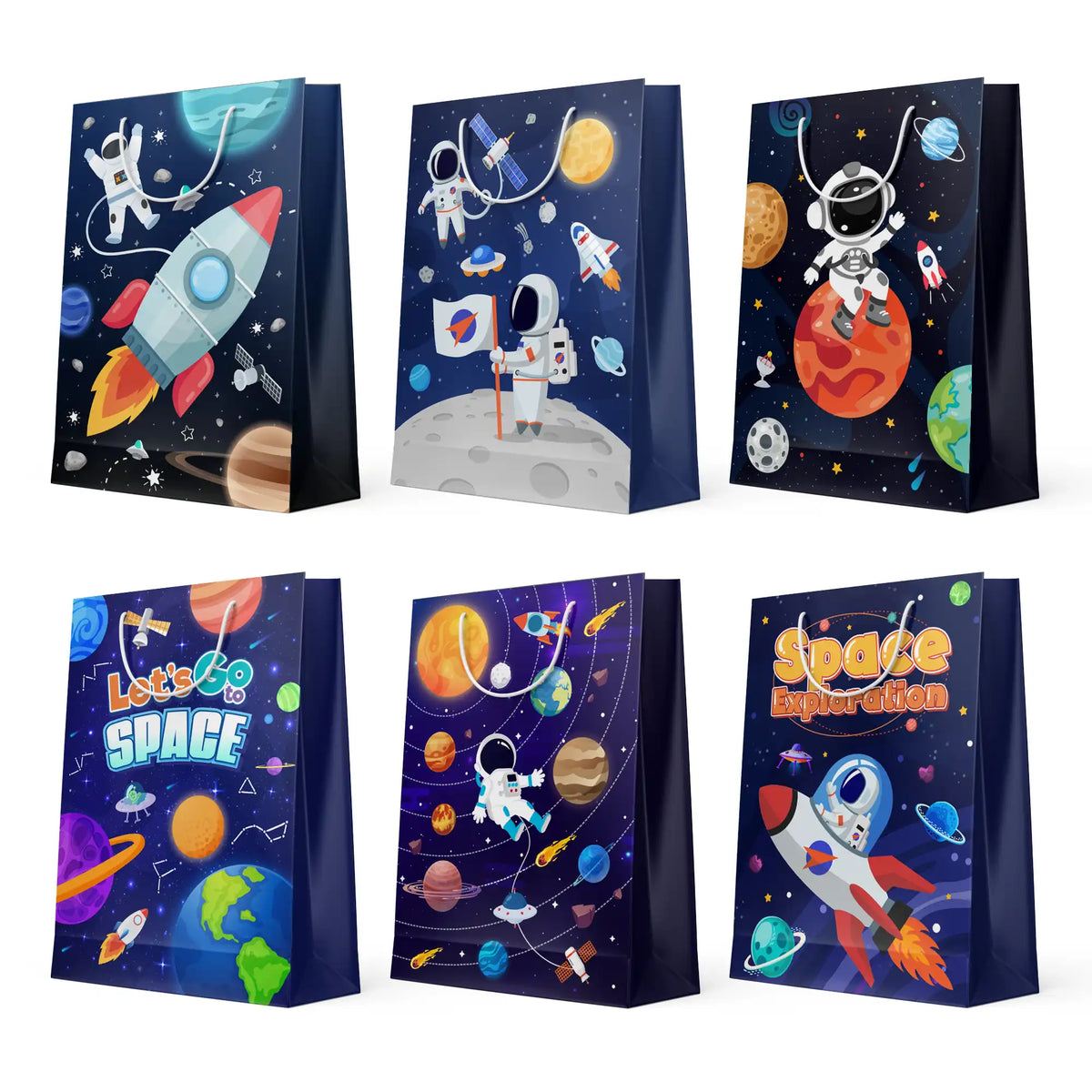 Excellent Quality: Our outer space birthday gift bag are made of high-quality materials, durable, not easy to tear, deform and break, and can provide an ideal packaging solution for the upcoming space birthday party or astronaut party.