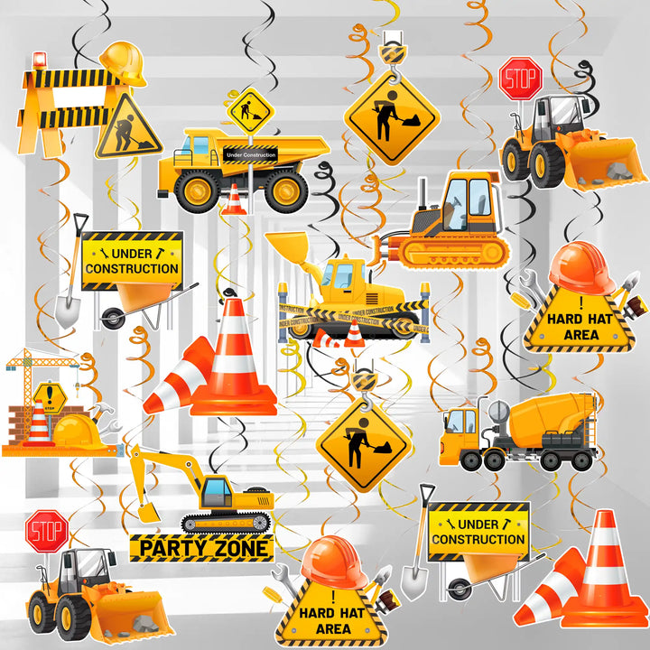 Construction Hanging Swirl Decorations: You will receive 32 pieces of construction birthday hanging swirl, including 24 pieces of construction birthday party swirls and 8 pieces of two-way construction party ceiling streamers, enough to decorate your construction theme birthday party.
