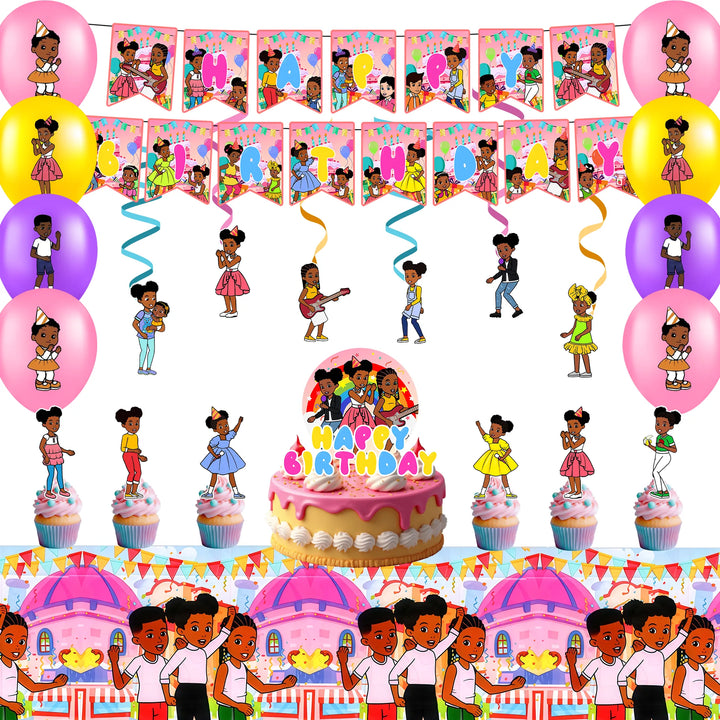 Gracie's Corner Party Decoration Kit: This Gracie's Corner birthday decoration kit includes 1 birthday banner, 1 cake decorator, 1 tablecloth, 12 cupcake decorators, 6 spiral decorations, 12 party balloons, and other Gracie's Corner birthday party decorations.