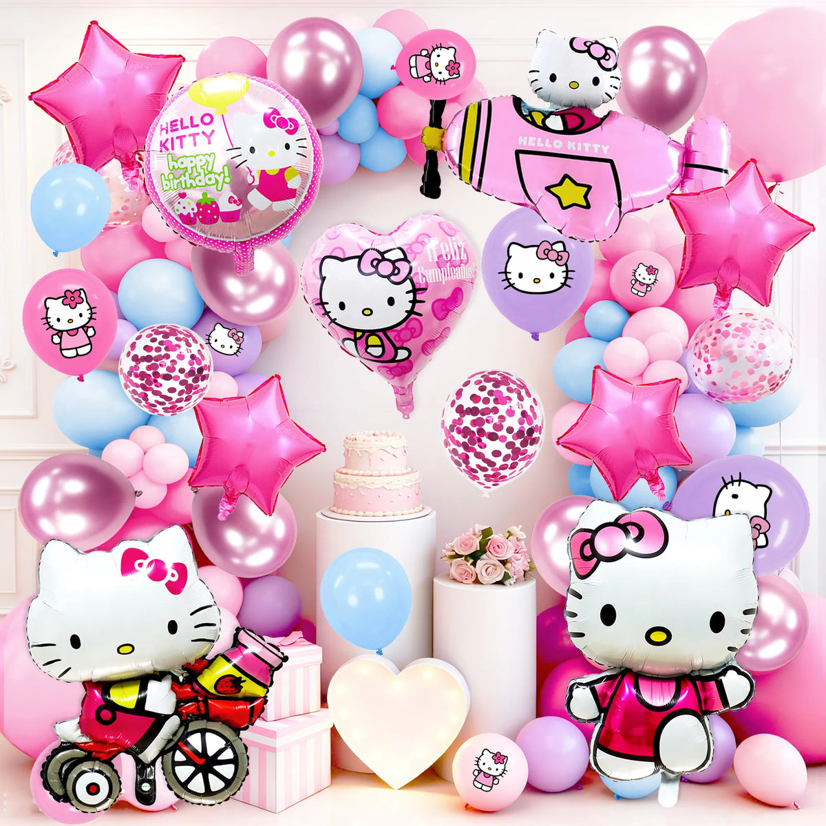 Eye Catching Hello Kitty Balloon Set: Our hello kitty balloon party decorations include 1 round hello kittyes foil balloon, 4 star hello kitty balloons, 4 hello kitty foil balloon,20 12'' hello kitty theme party latex balloons,20 5'' hello kitty theme party latex balloons, 20 10'' hello kitty latex balloons etc hello kitty birthday decorations.