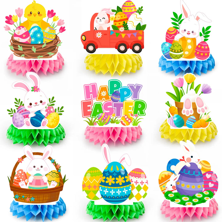 Easter Decorations Set: This easter honeycomb eggs for table decoration features an adorable bunny and egg design, perfect for adding a festive touch to your easter party.