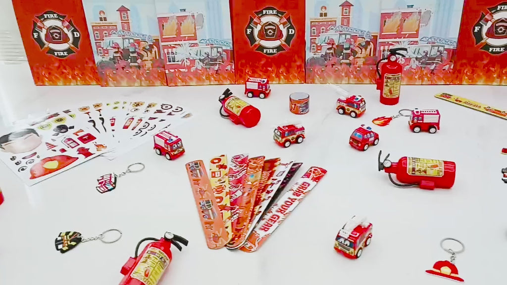 Firefighter Party Favors,12 Guests Fire Truck Party Favors Set- Firefighter Party Stickers Slap Bracelets Keychains etc Firefighter Themed Party Favors for Firefighter Birthday Party Decorations Supplies