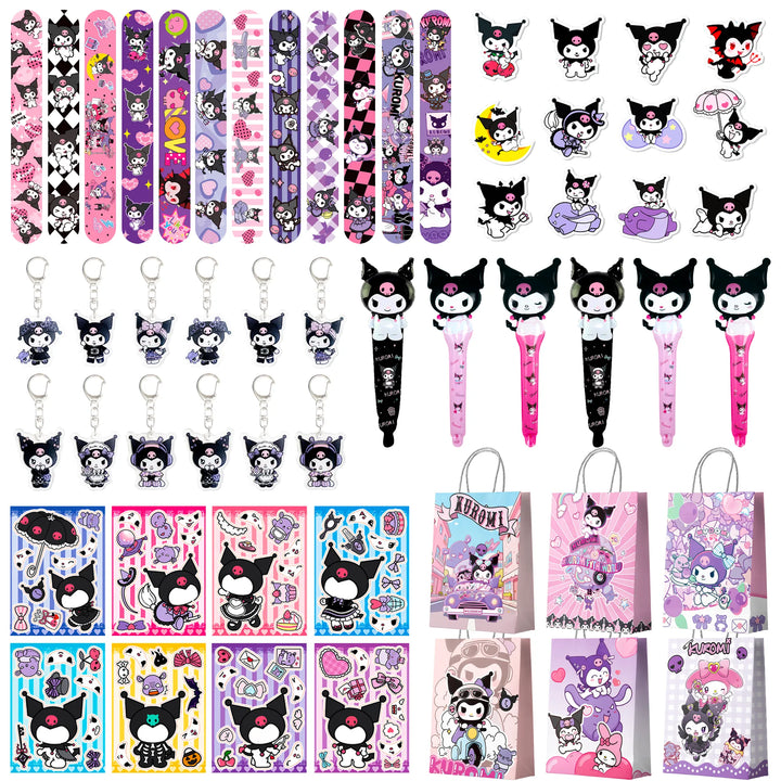 Unique Design: This Kuromi gift set features a Kuromi theme, with various Kuromi designs on the gift bags and slap rings. Choosing these Kuromi gift bag fillers will make it easy for your child to have an unforgettable Kuromi party!