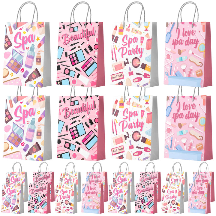 Spa Party Decorations Bags: You will receive 4 different styles of makeup birthday party decorations bags, 4 bags of each style of spa theme party decorations bags, sufficient quantity can well meet your needs.