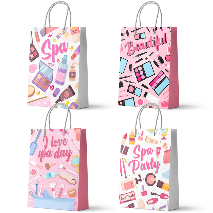 Spa Party Decorations Bags: You will receive 4 different styles of makeup birthday party decorations bags, 6 bags of each style of spa theme party decorations bags, sufficient quantity can well meet your needs.