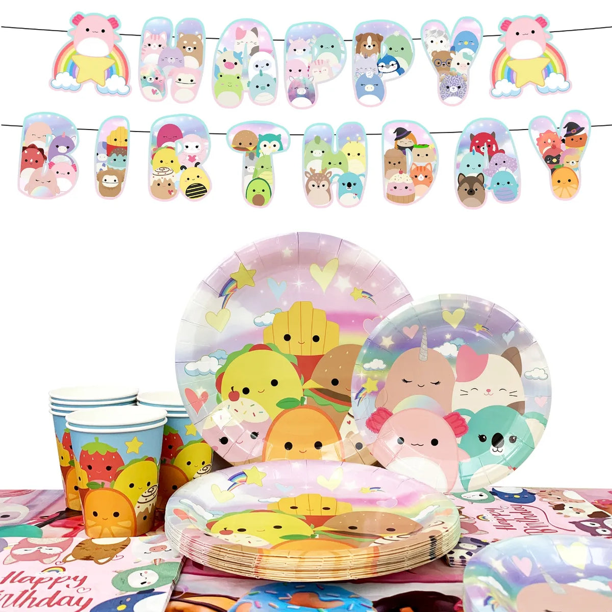 Wide range of applications: In addition to Squishmallows birthday parties, girls' party supplies can also be used for Squishmallows-themed parties, school events, friend gatherings, family dinners and other occasions.
