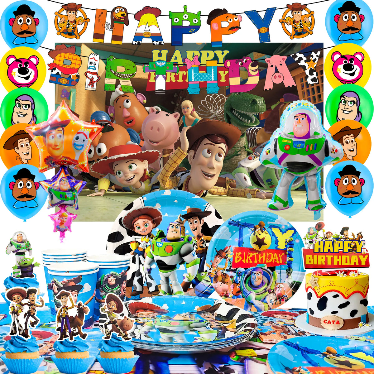 🚗Toy Themed Story🚗 Designed with a toy game story theme and featuring images of woody, buzz lightyear and their friends on the toy game story ballons, gaming story birthday backdrop and toy game story party tablecloth, our toy game story party decorations are sure to be a hit at your toy themed story party.